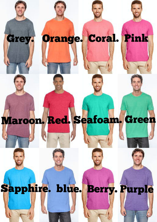 All graphic tees are sublimated on softstyle unisex Gildan shirts.